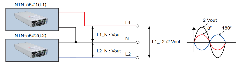 明緯新推出的 NTN-5K 是一款 5000W 高可靠離網(wǎng)正弦波的 DC-AC 逆變器,內建交流充電器和 UPS 功能 (交流旁路)。搭配電池適用于住宅、商業(yè)、船舶、汽車、礦山、建筑工地與沒有市電的偏遠地區(qū)。除了可單相使用外,也可以使用 3 臺并按照以下的配接方式組成三相四線式電源,應用于三相四線 (L1/L2/L3/N) 設備或分別配接相電壓 (L1/L2/L3-N) 于單相設備。