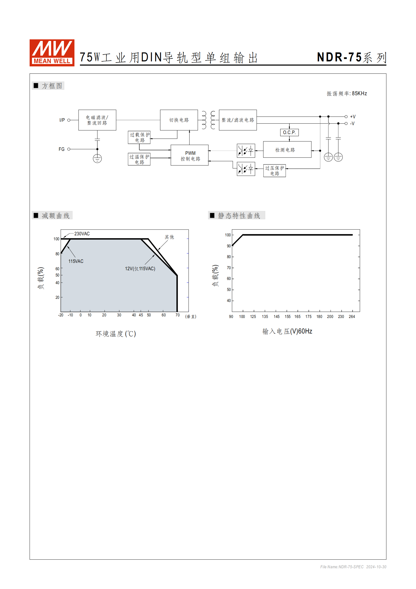 效率(Typ.):NDR-75-12 為 85.5%,NDR-75-24 為 88%,NDR-75-48 為89%