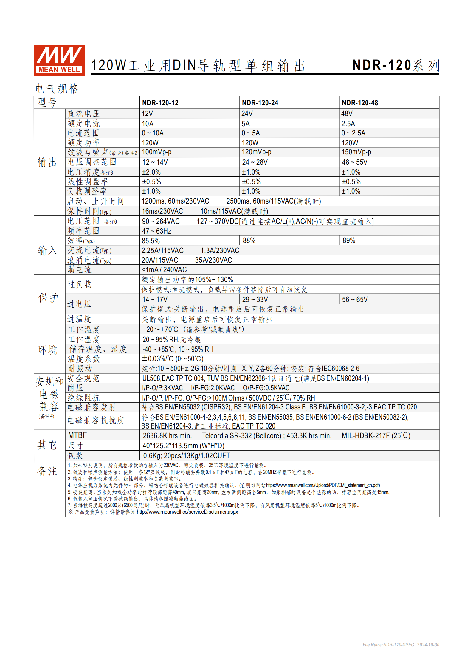 | 類別 | 具體參數(shù) | NDR-120-12 | NDR-120-24 | NDR-120-48 |