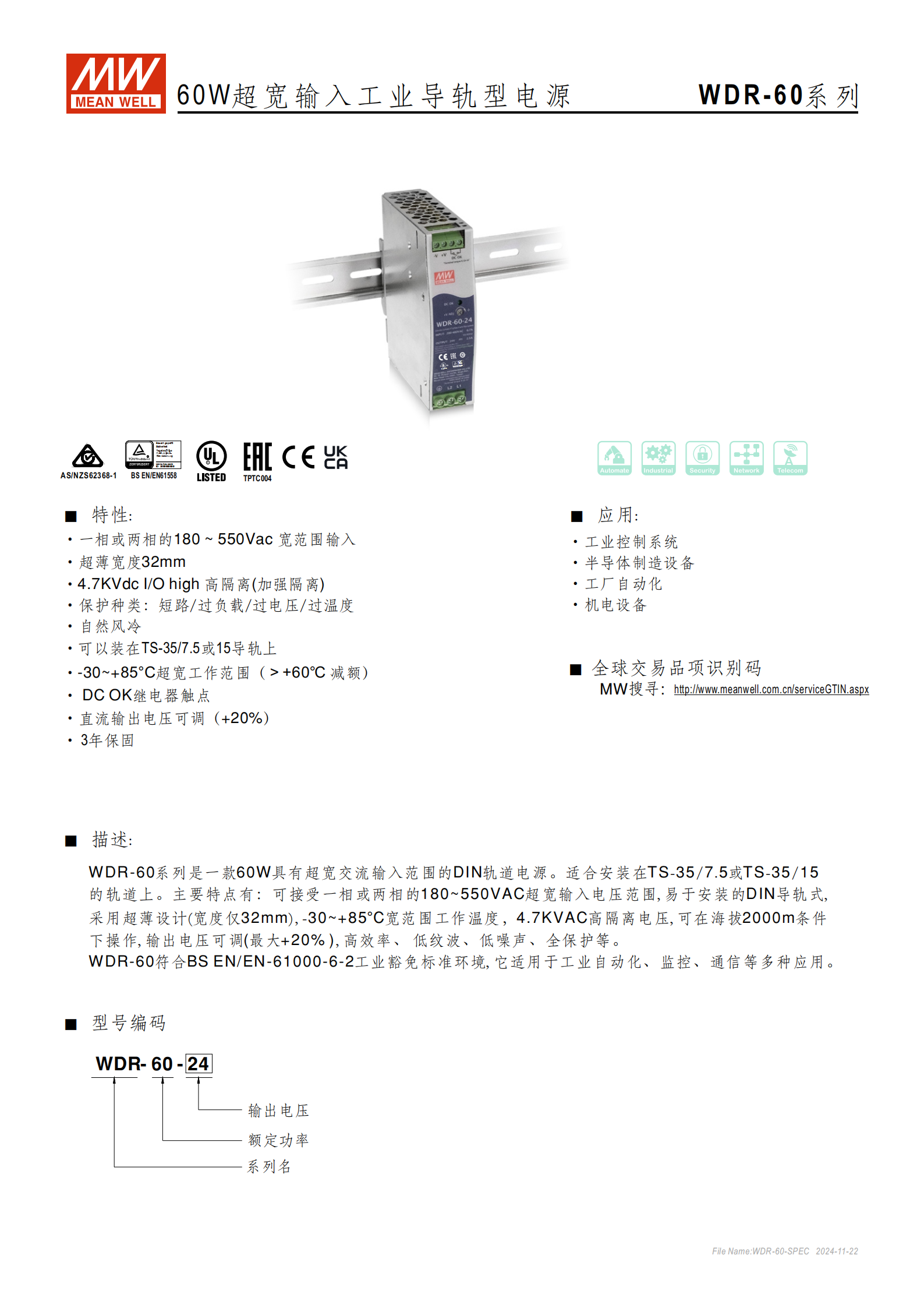 | 產(chǎn)品系列 | WDR-60 系列 |