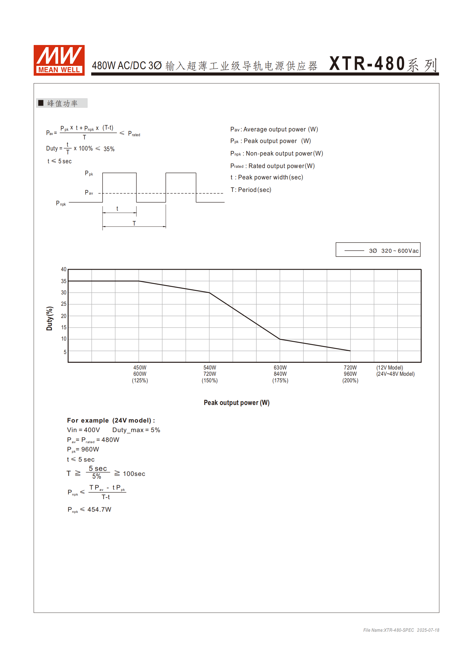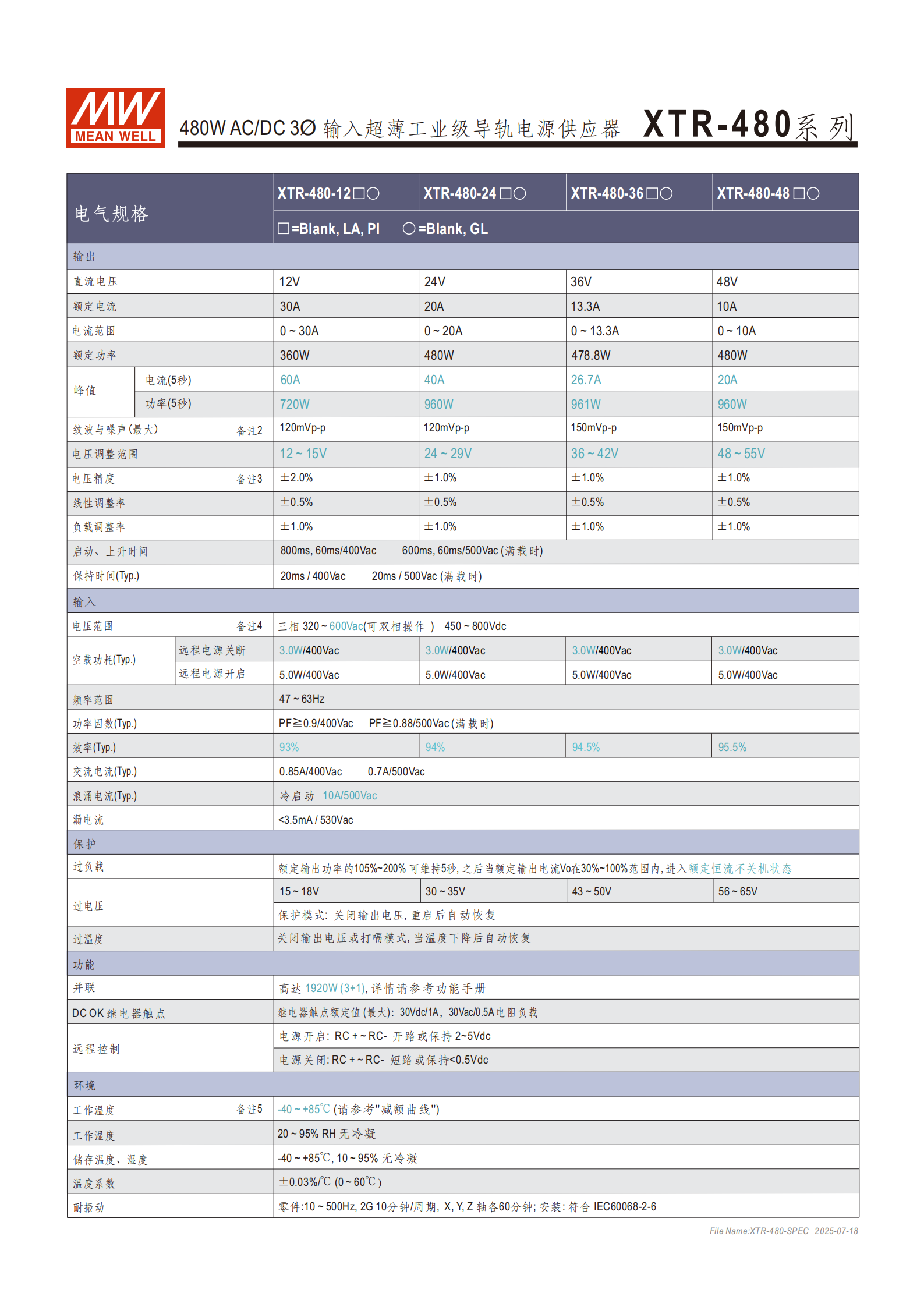 問題 3:XTR-480 系列不同輸出電壓型號的關(guān)鍵參數(shù)(額定電流、峰值電流、過壓保護(hù)值)有何差異?
