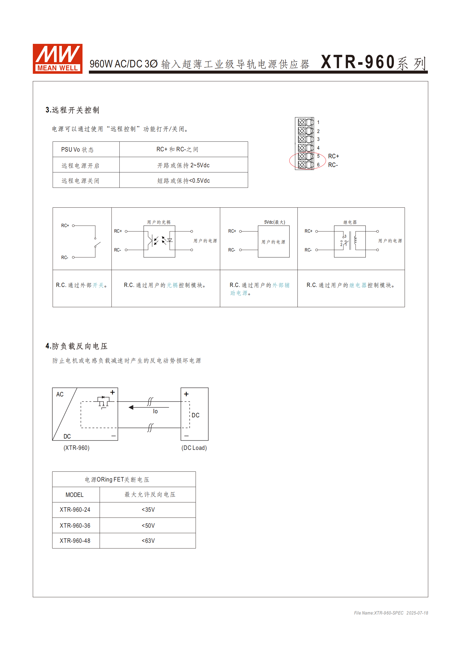 問題 3:XTR-960 系列的遠程控制和 DC OK 功能如何實現(xiàn)?接線有哪些關鍵要求?