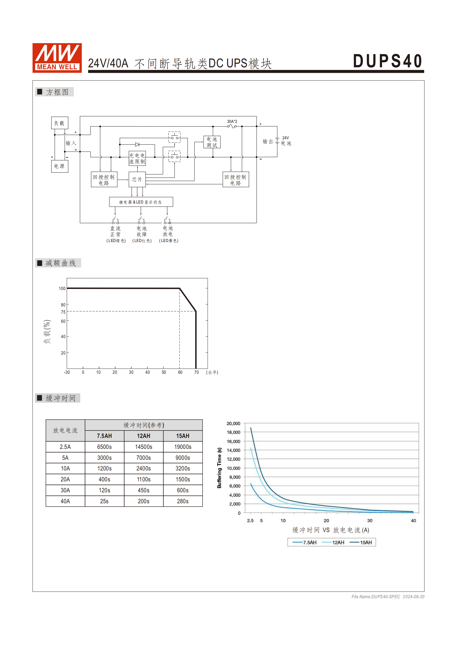 答案:12AH 電池對應(yīng)的后備時間(緩沖時間)為:2.5A 放電時 14500s、5A 放電時 7000s、10A 放電時 2400s、20A 放電時 1100s、30A 放電時 450s、40A 放電時 200s;高環(huán)境溫度下需注意:模塊工作溫度上限為 70℃,但高環(huán)溫需降額輸出(需參考產(chǎn)品減額曲線),避免因散熱不足影響設(shè)備穩(wěn)定性。
