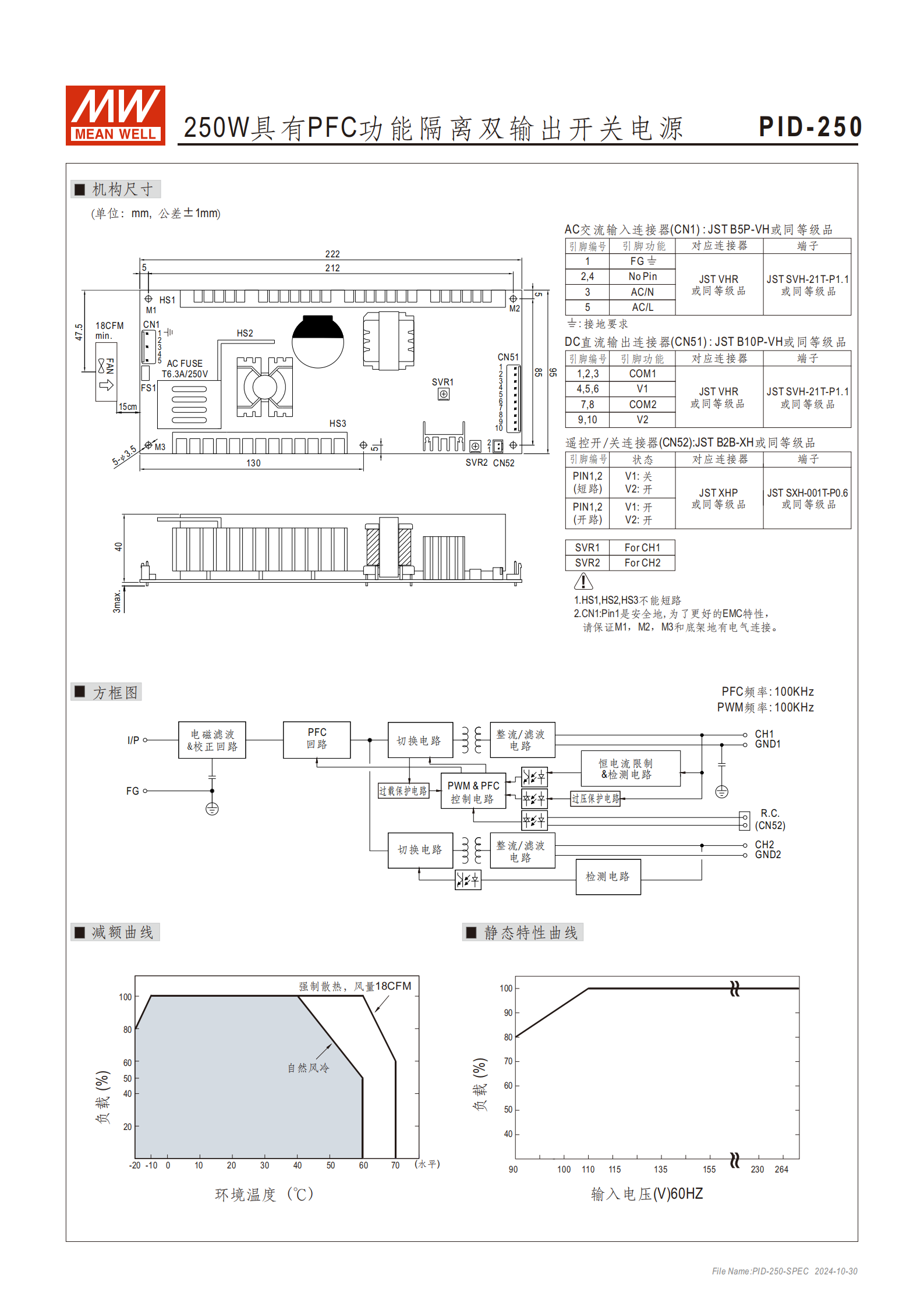 產(chǎn)品名稱:250W 具有 PFC 功能隔離雙輸出開關電源(PID-250 系列)