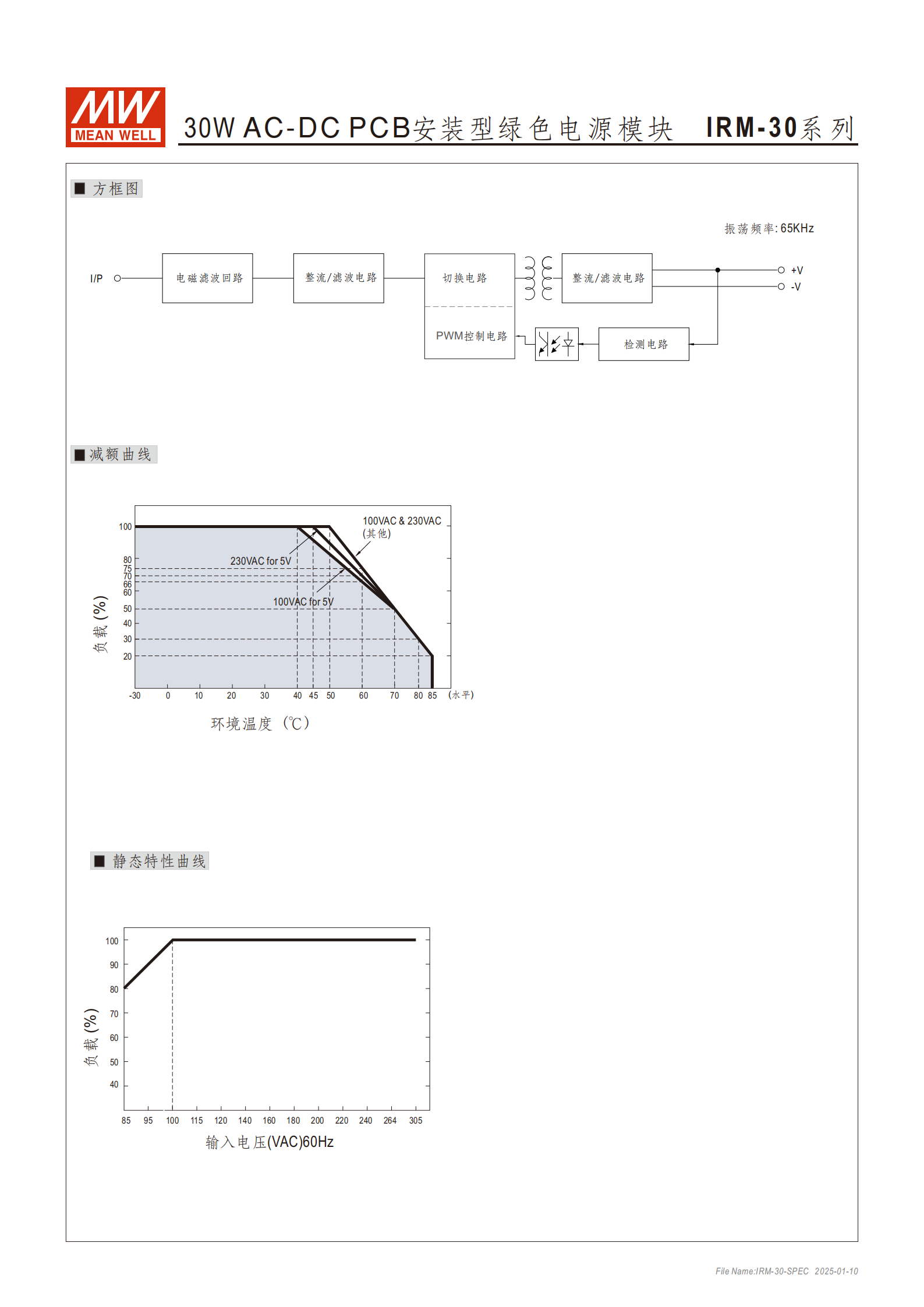 | 產(chǎn)品名稱 | IRM-30 系列 30W AC-DC PCB 安裝型綠色電源模塊 |