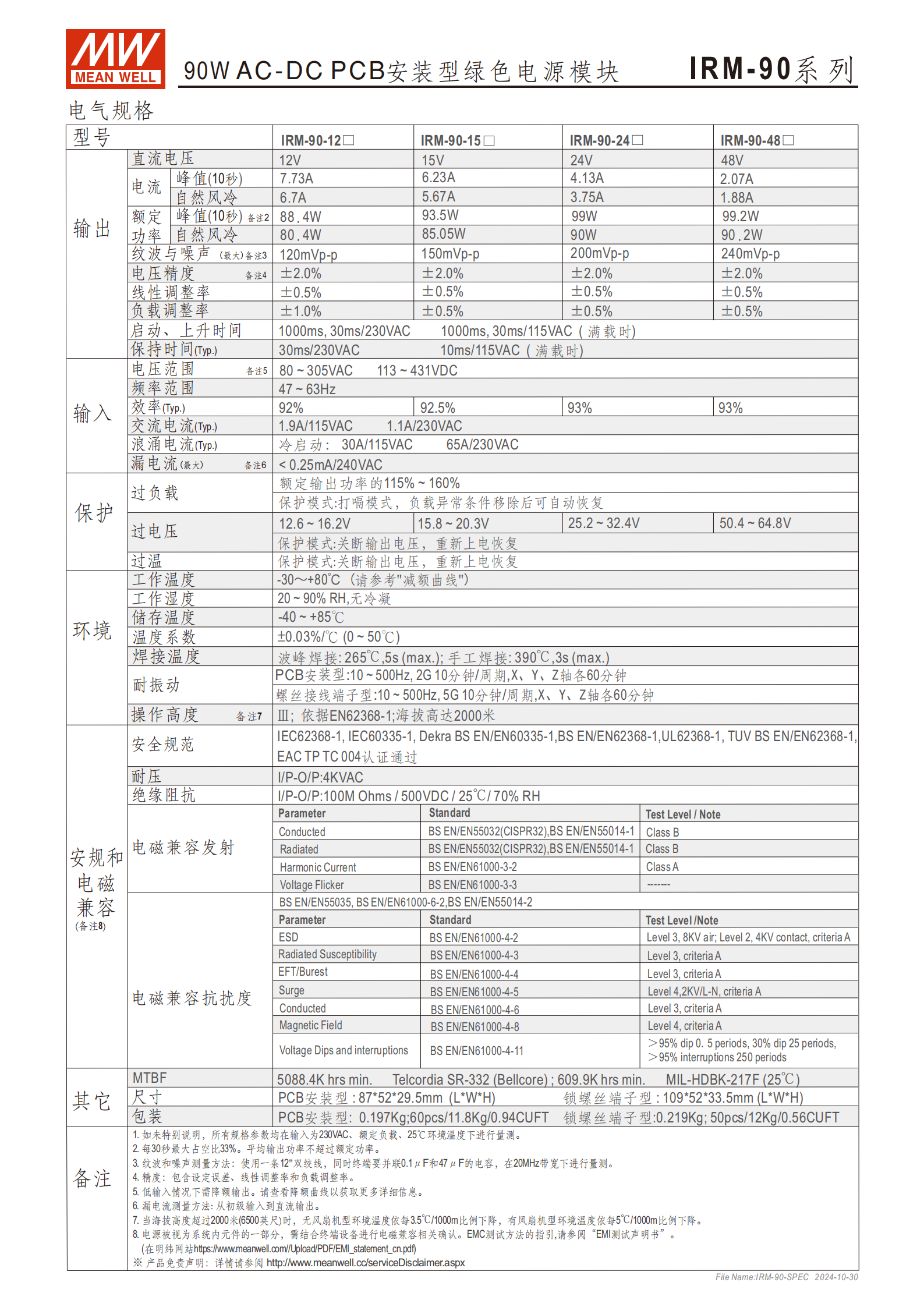 | 類別 | 參數(shù) | IRM-90-12 | IRM-90-24 | IRM-90-48 |