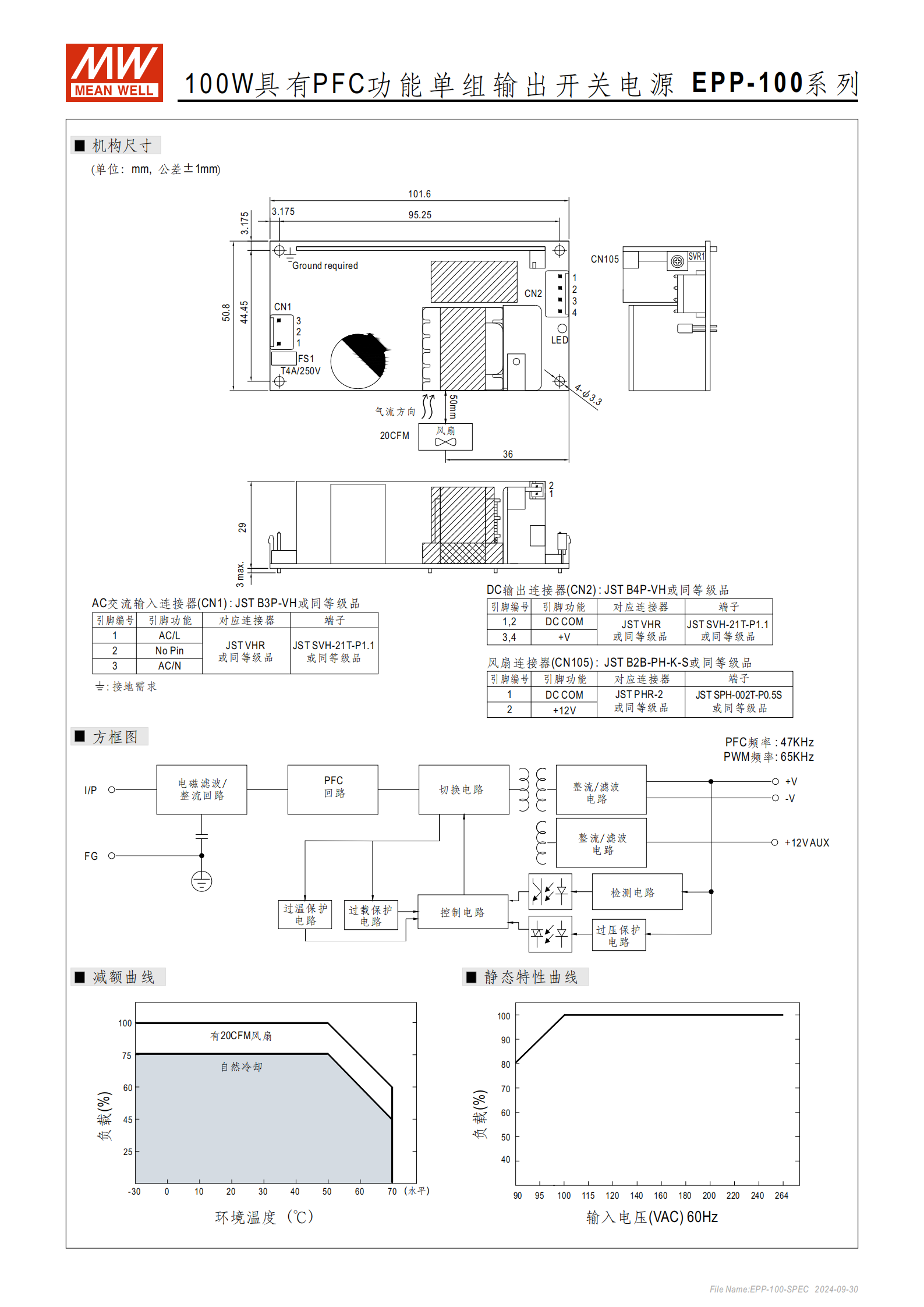 AC 輸入連接器(CN1):JST B3P-VH 或同等級(jí)品,引腳 1=AC/L、3=AC/N