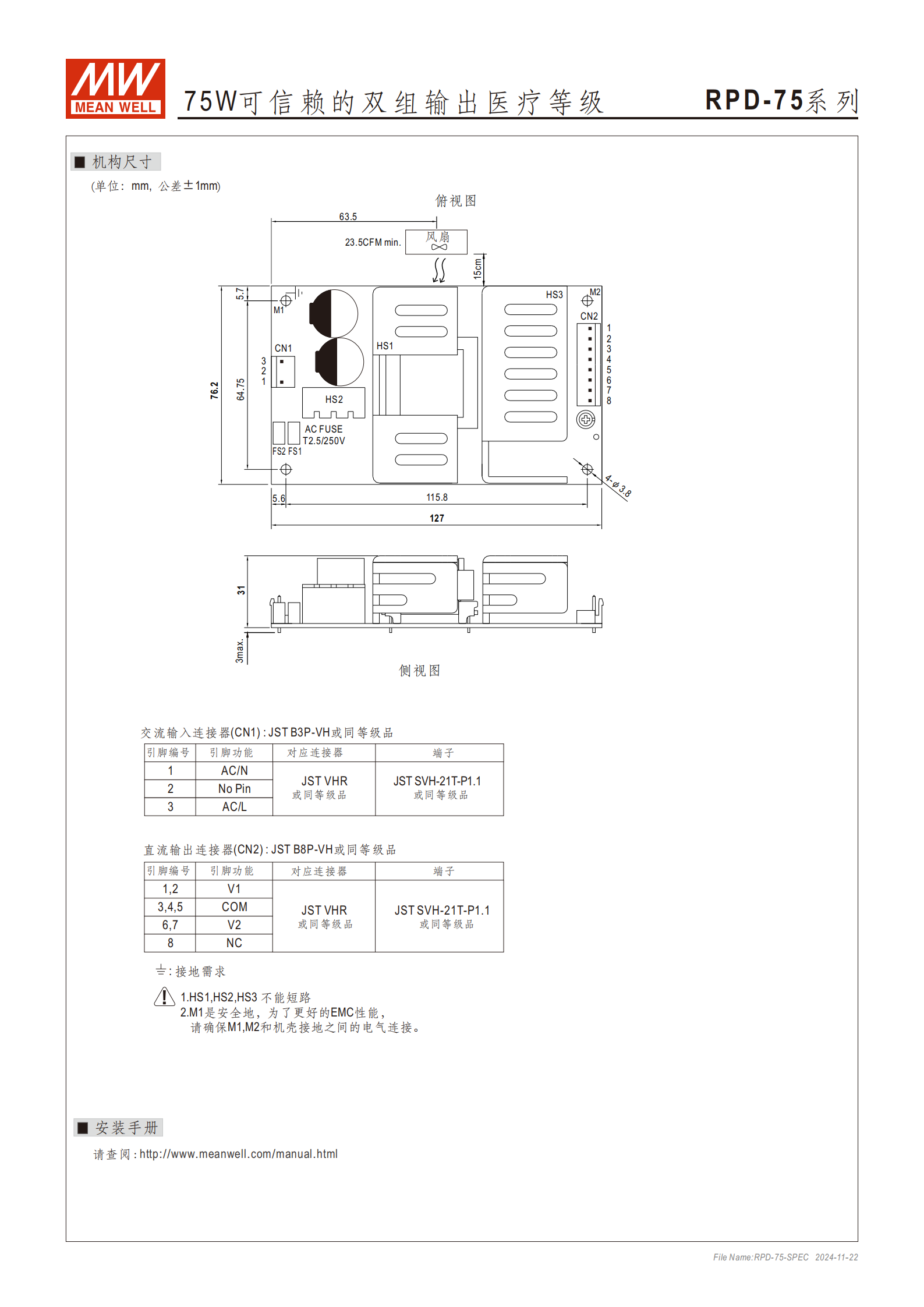 接地要求:M1為安全地,建議與M2及機(jī)殼接地良好連接以優(yōu)化EMC性能