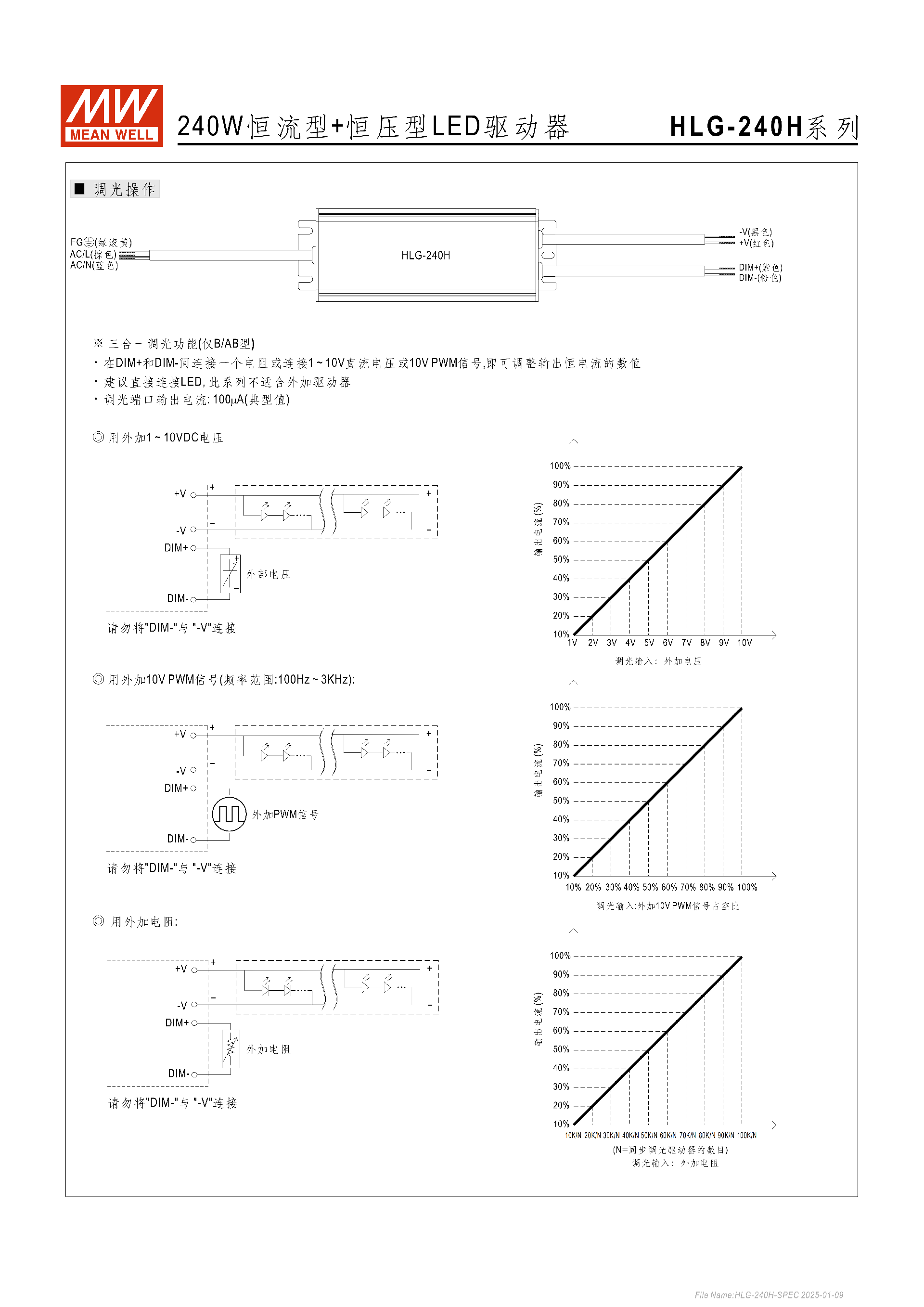 問(wèn)題 2(功能應(yīng)用類(lèi)):HLG-240H 系列的三合一調(diào)光功能僅哪些型號(hào)支持,具體有哪三種調(diào)光方式,核心操作要求是什么?