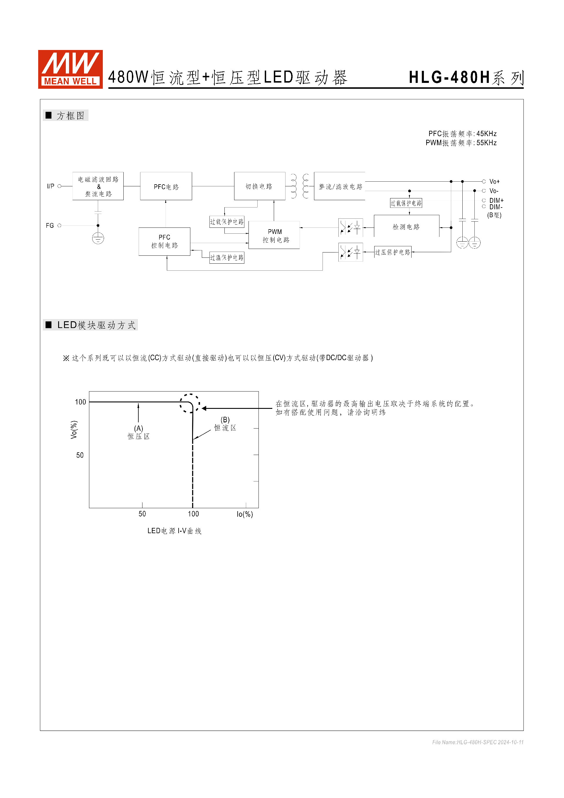 HLG-480H 系列是明緯推出的480W恒流 + 恒壓雙模式 LED 交流轉(zhuǎn)直流驅(qū)動(dòng)器,為戶內(nèi)戶外通用型產(chǎn)品,核心特性如下: