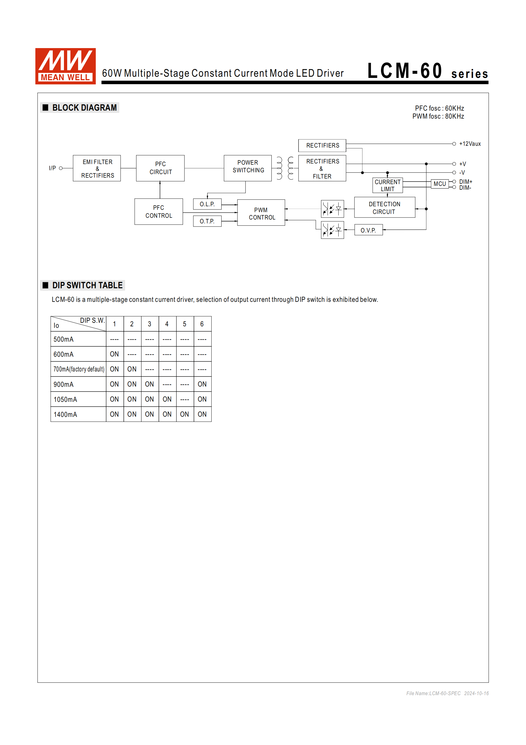 問題 1(功能設(shè)置類):LCM-60 系列如何調(diào)節(jié)輸出電流,各檔位的 DIP 開關(guān)設(shè)置規(guī)則是什么?