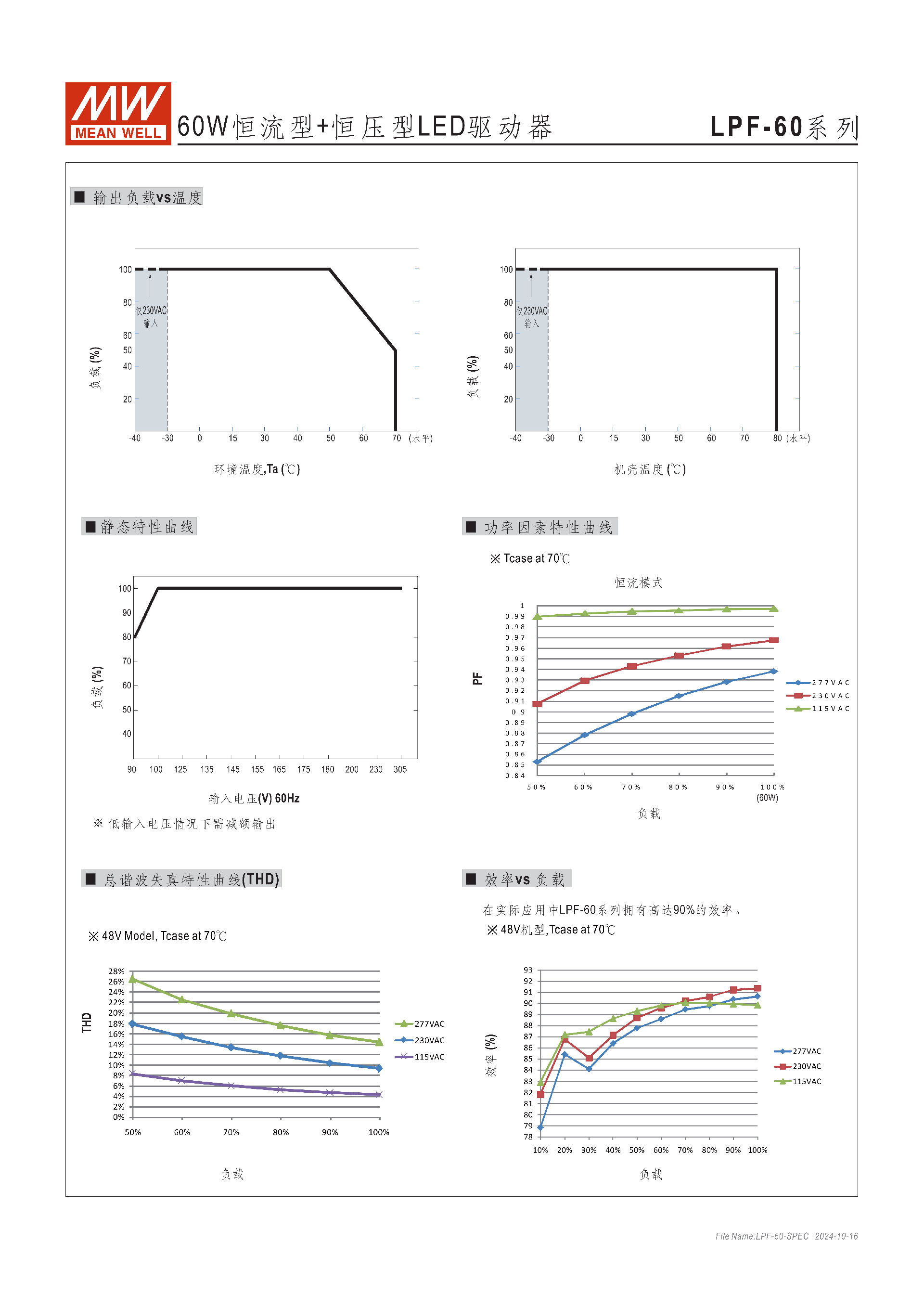 問題 2(環(huán)境與使用限制):LPF-60 系列的工作溫度范圍是多少,有哪些特殊的使用降額要求?