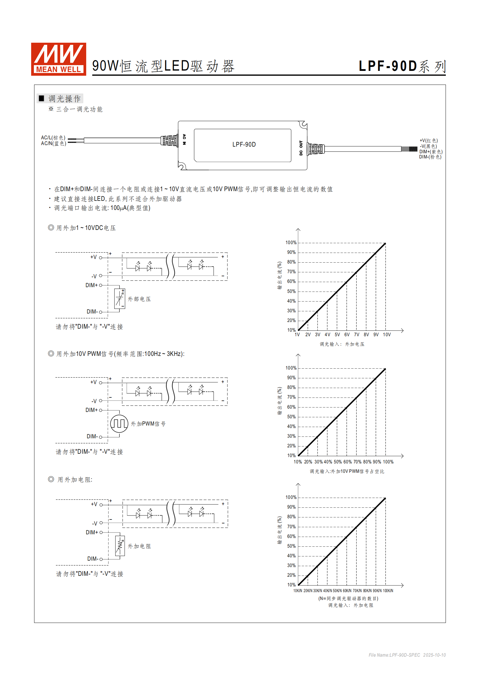 電壓調(diào)光:1~10V 直流電壓對應(yīng)輸出電流 10%-100%;