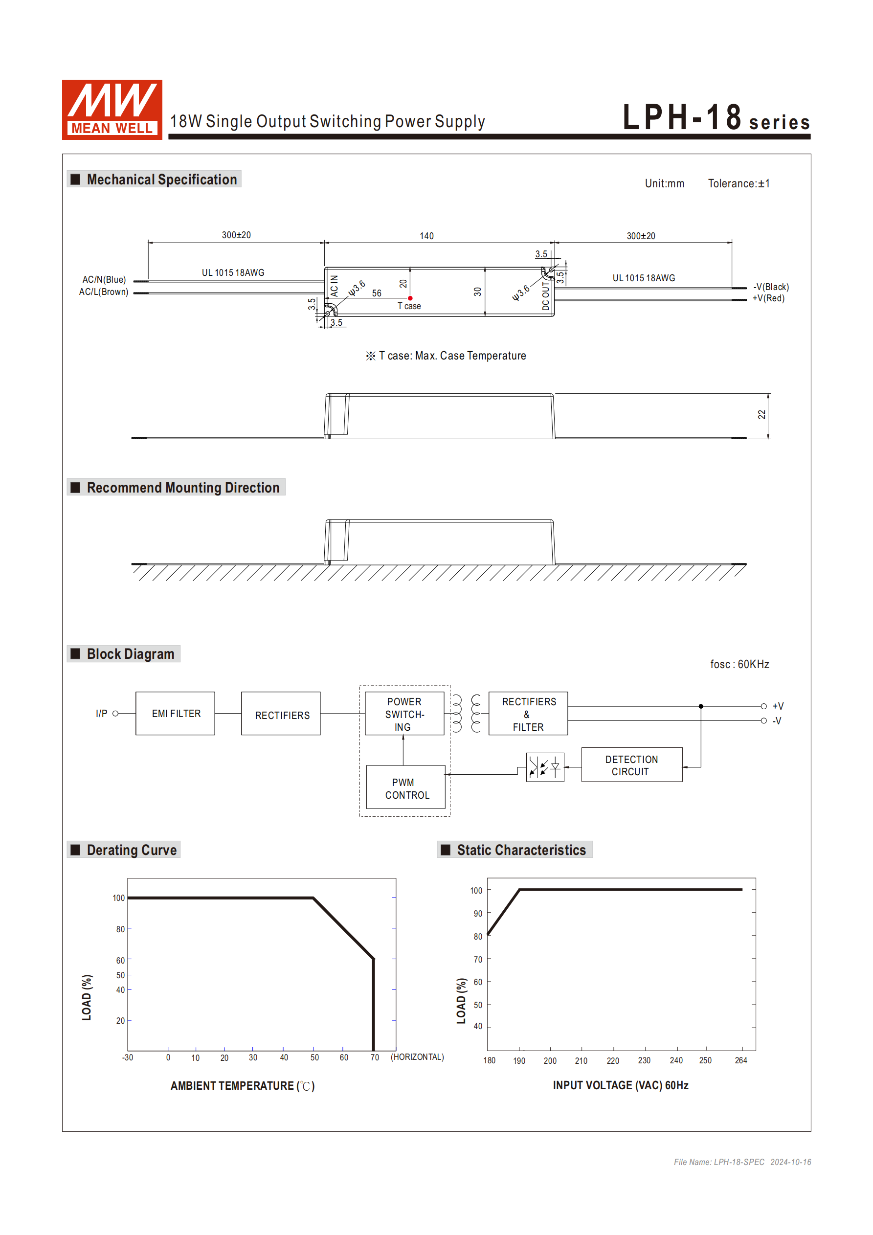 | LPH-18-12 | 12V | 1.5A | 0~1.5A | 18W | 120mVp-p | 77% | 13.8~16.2V |