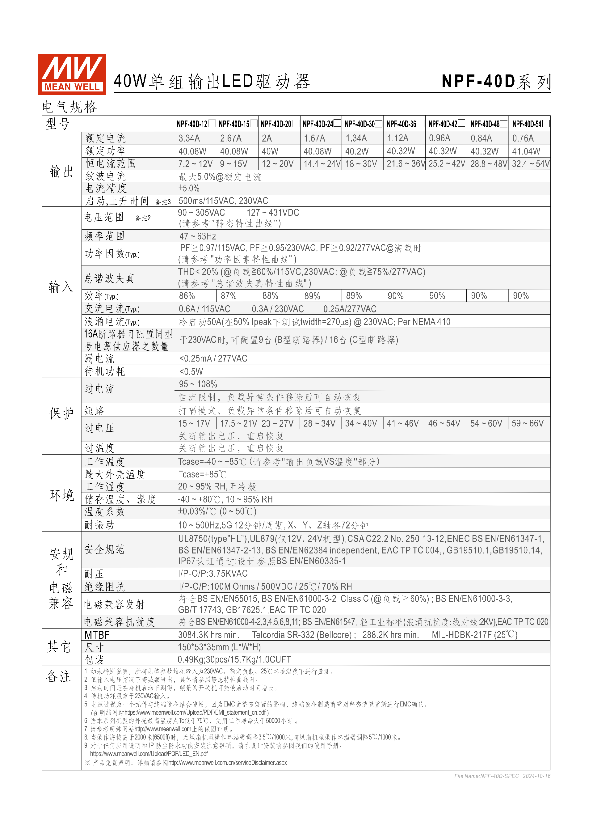 | LPF-40D-54 | 54V | 0.76A | 41.04W | 32.4~54V | 89% |
