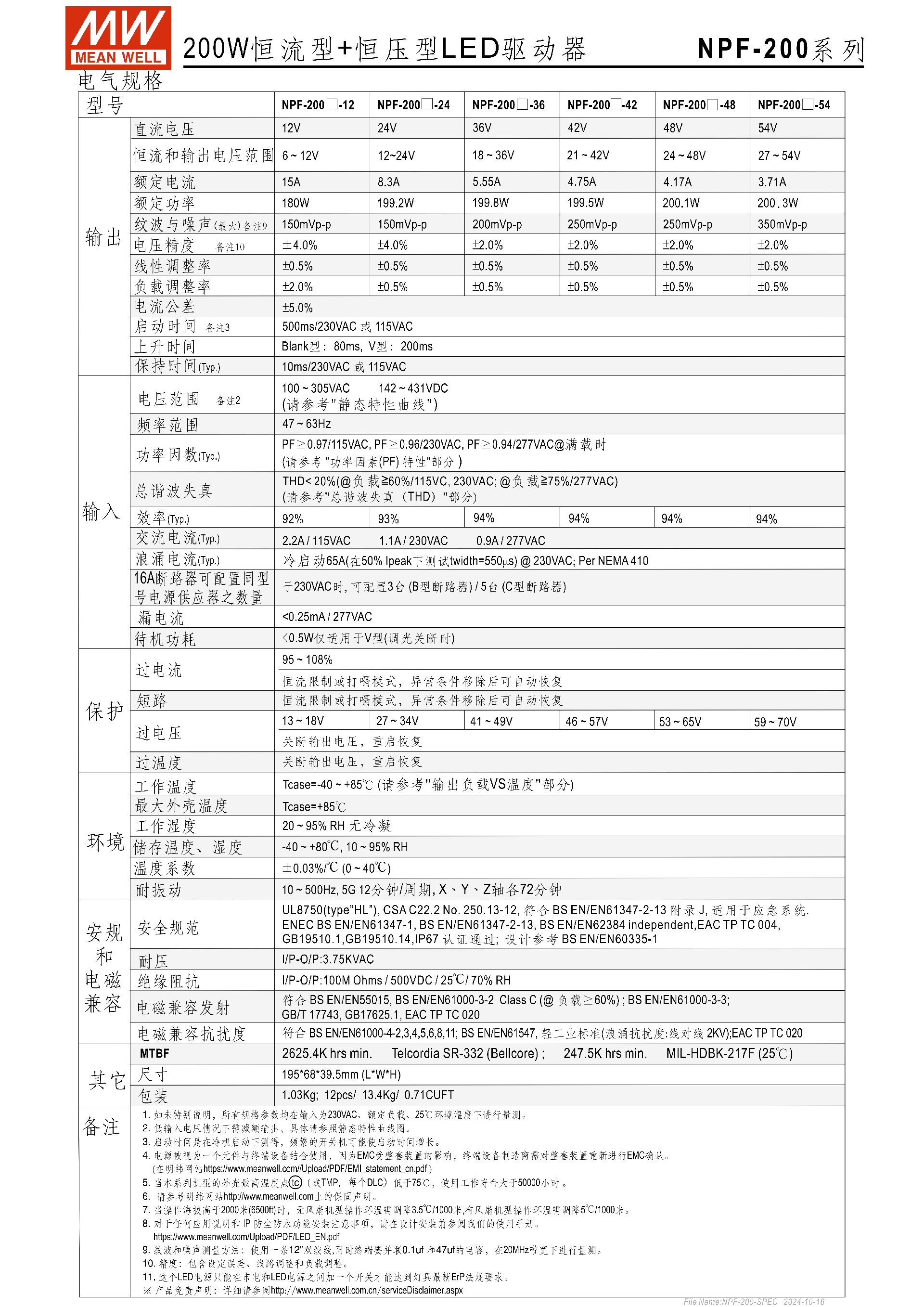 問題 1(產(chǎn)品適配性):NPF-200 系列各型號的額定輸出參數(shù)有何差異,核心適配哪些 LED 負(fù)載?