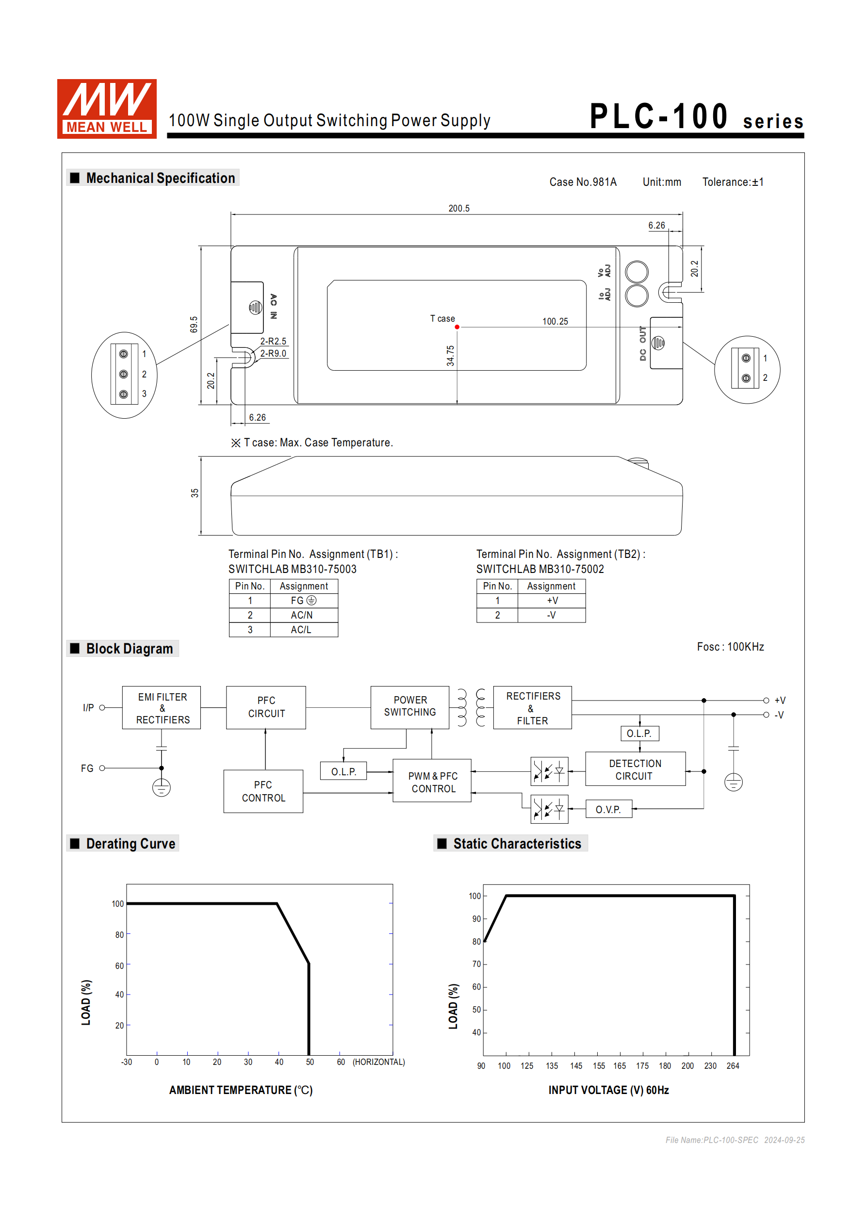 | PLC-100-24 | 24V | 4A | 96W | 18~24V | 20.4~24V | 150mVp-p |