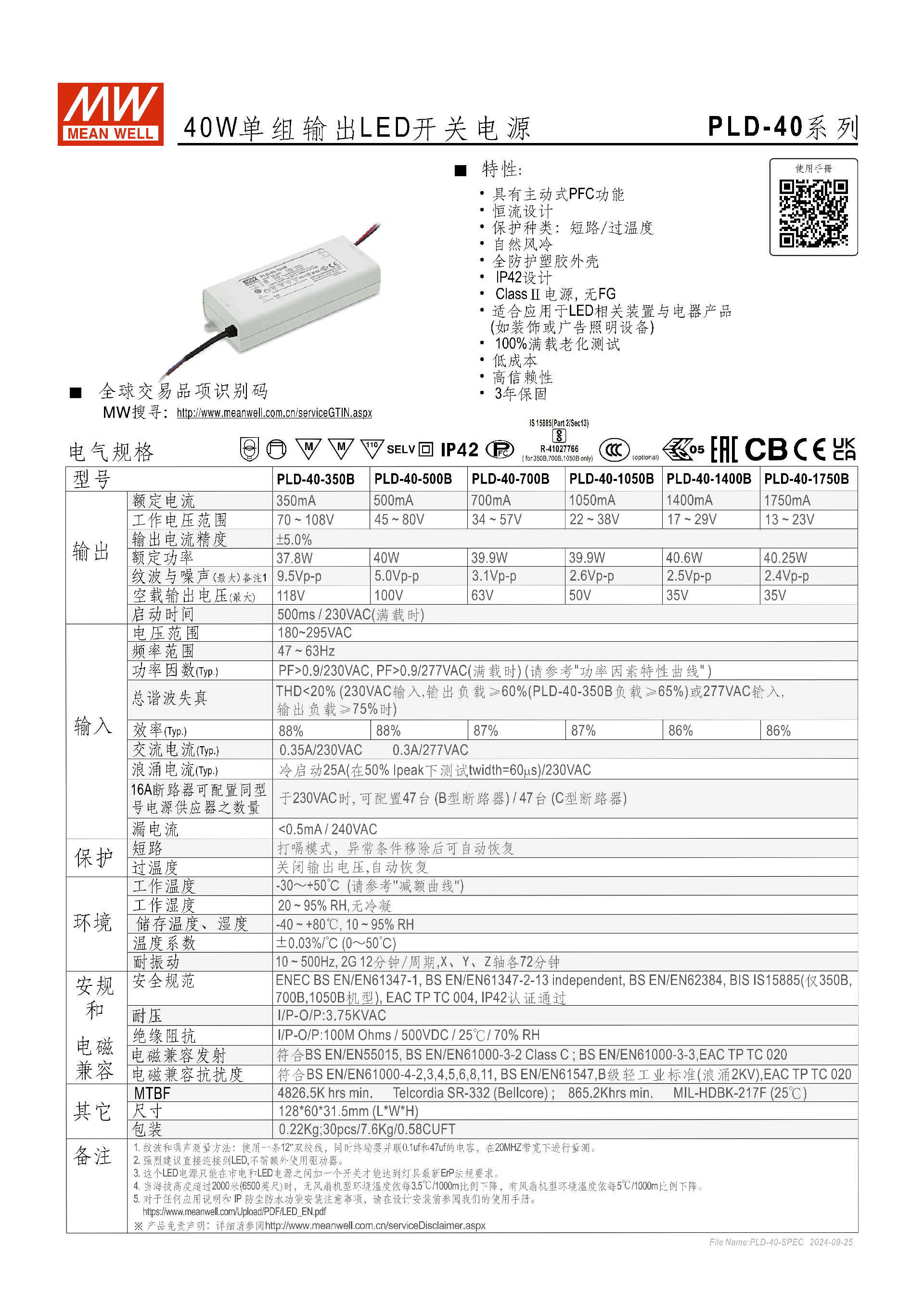 問題 3(性能與安規(guī)類):PLD-40 系列的功率因數(shù)、效率及核心安規(guī)認(rèn)證有何特點(diǎn),哪些型號有 BIS 認(rèn)證?