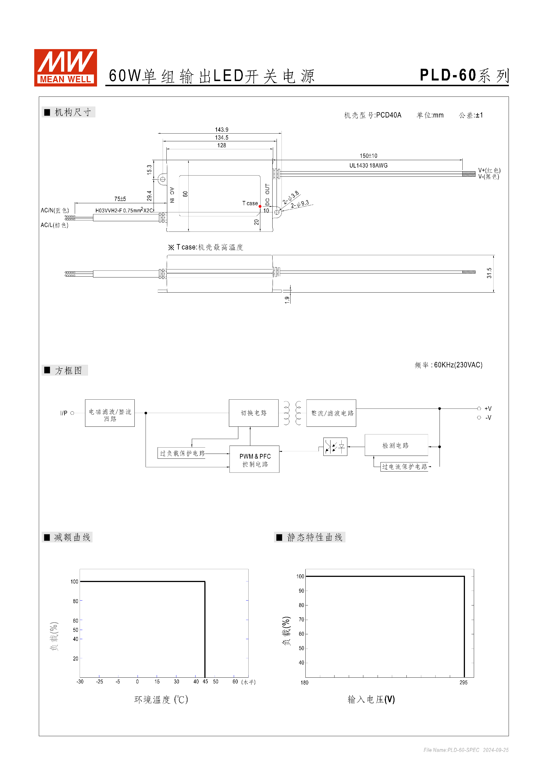 | PLD-60-1400B | 1400mA | 25~43V | 60.2W | 3.4Vp-p | 50V |