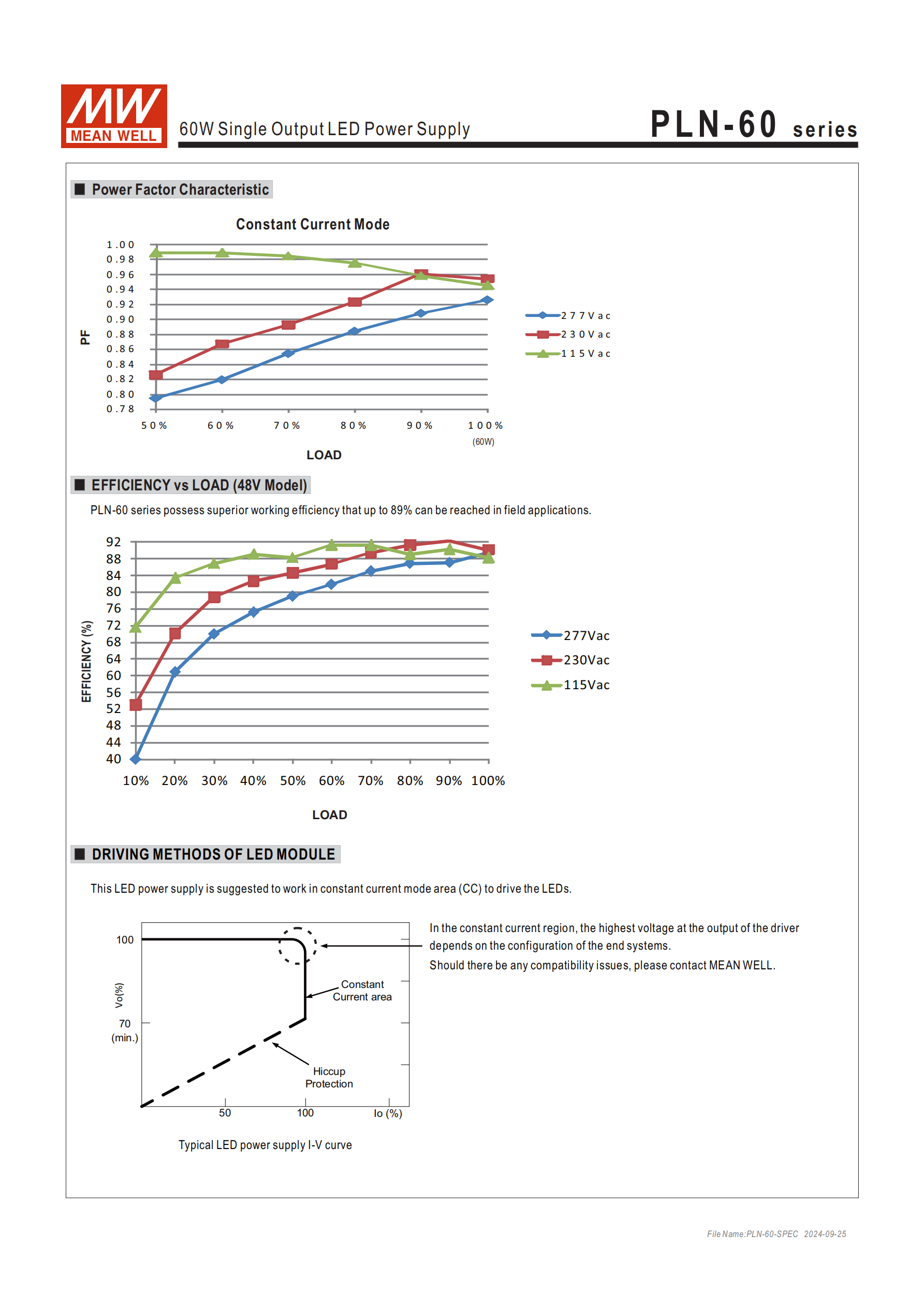 | PLN-60-27 | 27V | 2.3A | 62.1W | 18.9~27V | 2.7Vp-p | 25~30V |