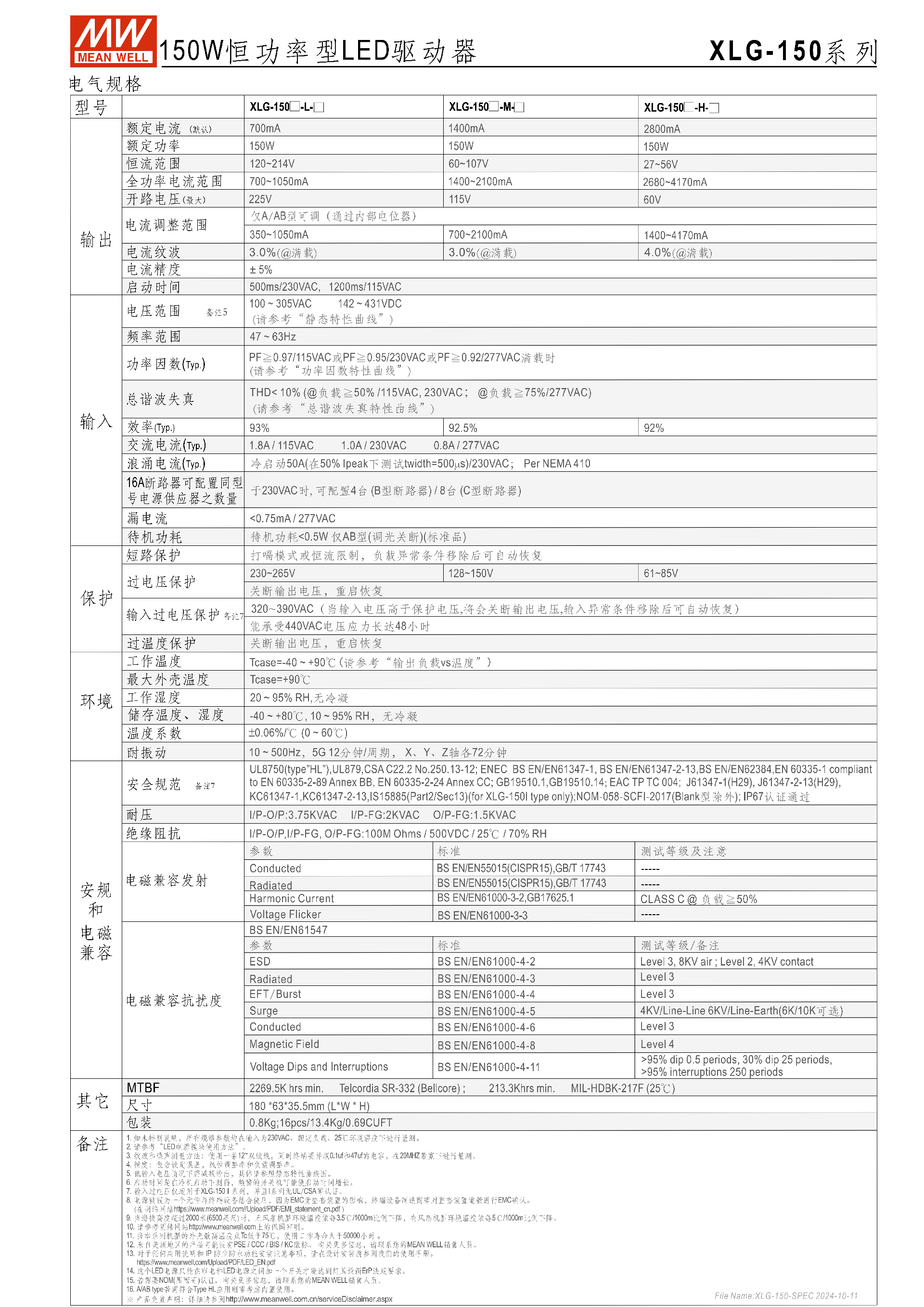 | 規(guī)格項(xiàng) | XLG-150-L | XLG-150-M | XLG-150-H |