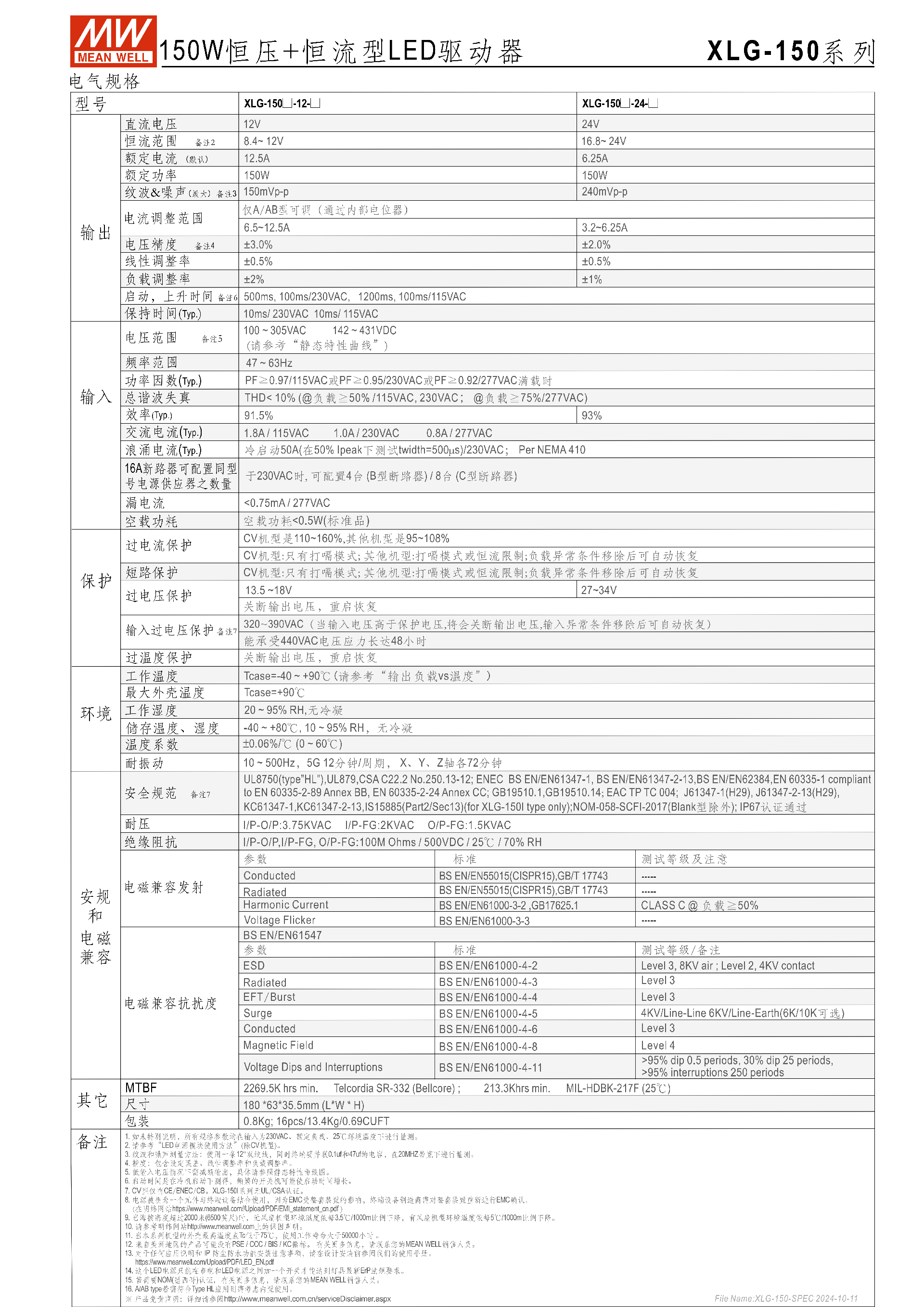 | 規(guī)格項(xiàng) | XLG-150-24 | XLG-150-12 |