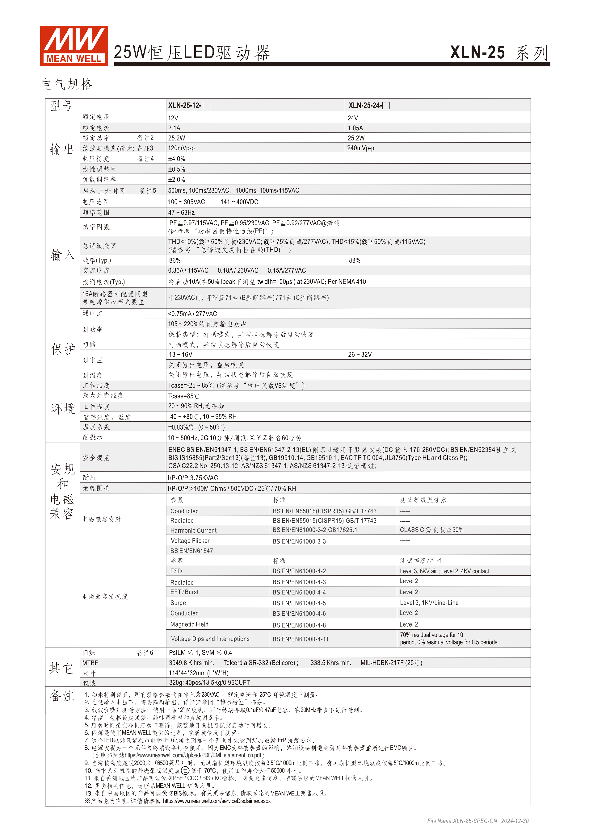 | 參數(shù) | XLN-25-12 | XLN-25-24 |