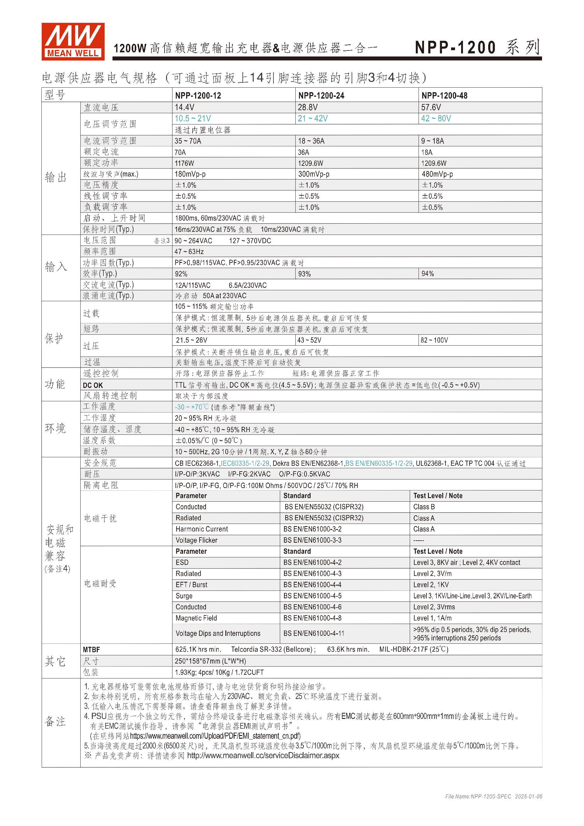 產(chǎn)品類型:明緯NPP-1200 系列為1200W高信賴超寬輸出充電器 & 電源供應(yīng)器二合一設(shè)備,小型化設(shè)計(jì),一機(jī)雙用為核心特色。