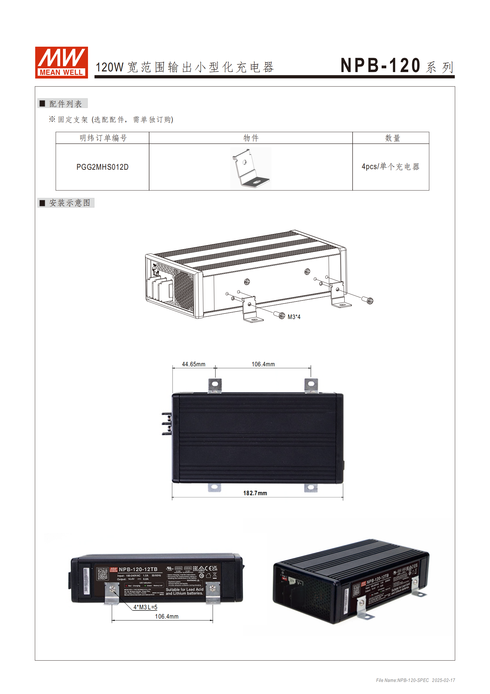 NPB-120 系列為明緯研發(fā)的120W 寬范圍輸出小型化充電器,屬于 Ⅰ 級(jí)電源(帶 FG),內(nèi)置 PFC,無(wú)風(fēng)扇設(shè)計(jì),空載功耗 **<0.15W**,提供3 年長(zhǎng)效保固,是全球交易品項(xiàng),可適配鉛酸電池(加水式、膠體式、吸附玻璃纖維式)和鋰電池(鋰鐵、鋰錳),通過(guò)UL/EN62368-1雙安規(guī)認(rèn)證,適用于無(wú)線電系統(tǒng)備份、電動(dòng)車、露營(yíng)車 / 重型卡車 / 特種車輛、監(jiān)測(cè)系統(tǒng)、便攜式電動(dòng)工具等場(chǎng)景。