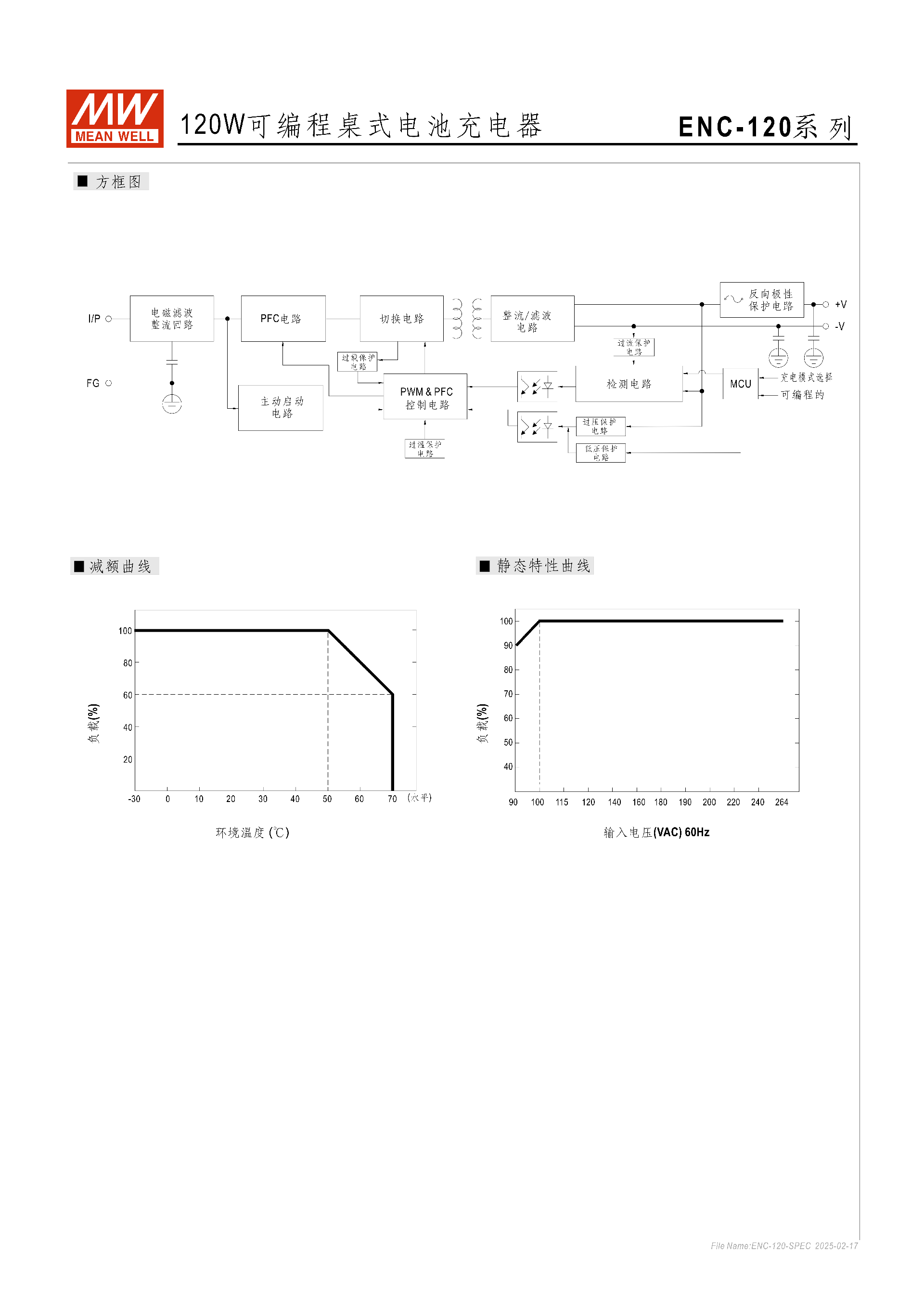 ENC-120 系列是明緯推出的120W 可編程桌式電池充電器,支持鉛酸蓄電池(膠體、加水、吸附玻璃纖維式)和鋰電池(鋰鐵、鋰猛)充電,具備三段式可編程充電曲線,擁有 **-30~+70℃寬工作溫度、無(wú)風(fēng)扇自然風(fēng)冷設(shè)計(jì),內(nèi)置主動(dòng)式 PFC和溫度補(bǔ)償功能,提供短路、過(guò)壓、過(guò)溫、反極性等多重保護(hù),有12V/24V/48V** 三款核心機(jī)型,適配不同容量電池,通過(guò)多項(xiàng)國(guó)際安規(guī)認(rèn)證,提供 3 年保固,適用于無(wú)線電系統(tǒng)備份、電動(dòng)自行車、監(jiān)控系統(tǒng)等場(chǎng)景。