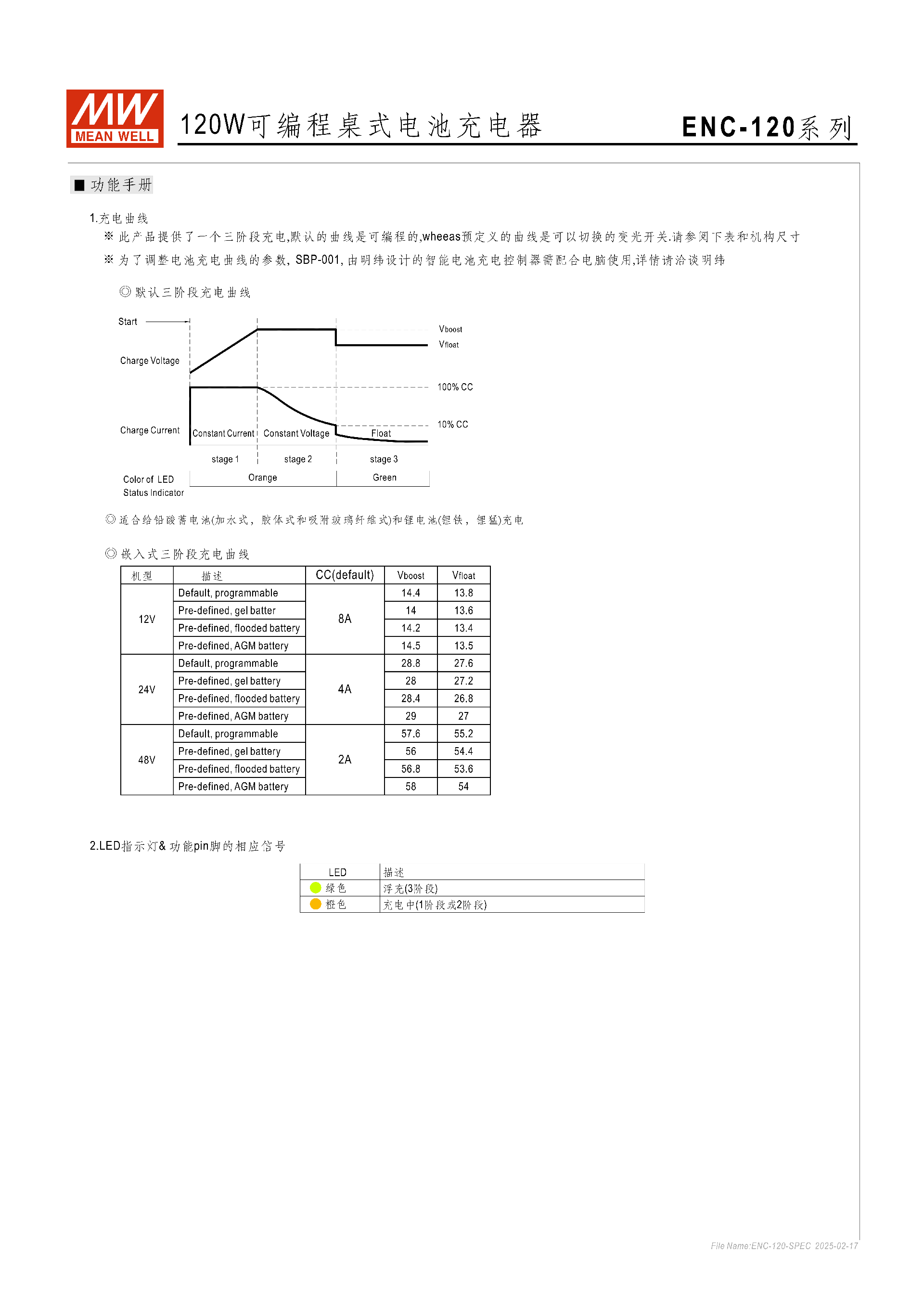 問(wèn)題 2(操作配置):如何切換 ENC-120 系列的充電曲線,LED 指示燈的狀態(tài)含義是什么?