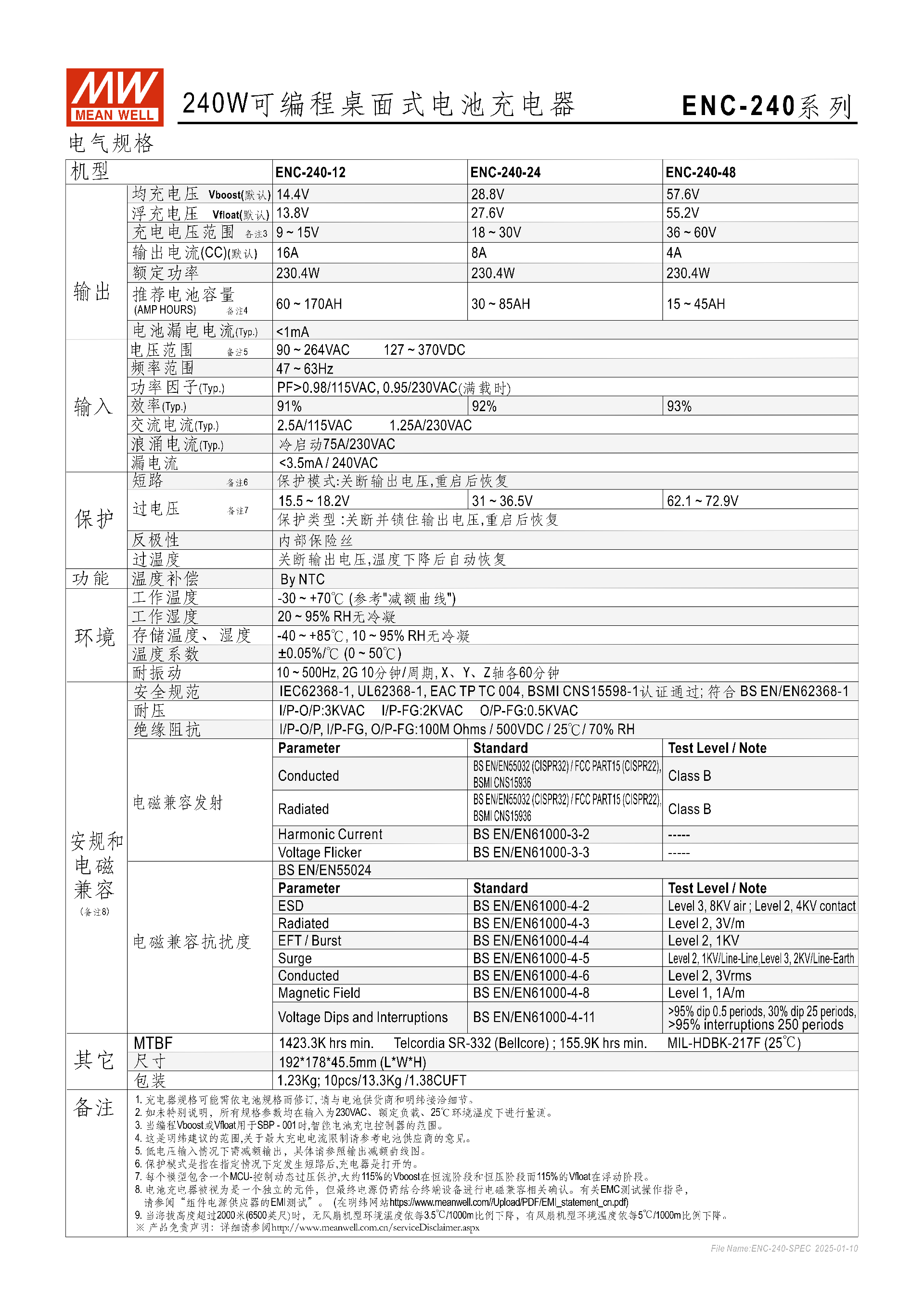 ENC-240 系列是明緯推出的240W 可編程桌面式 AC/DC 電池充電器,支持鉛酸蓄電池(膠體、加水、AGM 式)和鋰電池(鋰鐵、鋰猛) 充電,具備三段式可編程充電曲線,擁有 12V/24V/48V 三款核心機(jī)型,輸入為90~264VAC 全范圍交流,內(nèi)置主動(dòng)式 PFC、溫度補(bǔ)償?shù)裙δ?,采?span style="font: 700 16px / 24px ui-sans-serif, system-ui, sans-serif, "Apple Color Emoji", "Segoe UI Emoji", "Segoe UI Symbol", "Noto Color Emoji"; flex: 0 1 auto; flex-direction: row; justify-content: normal; align-items: normal; padding: 0px; margin: 0px; background-image: none; background-position: 0% 0%; background-size: auto; background-repeat: repeat; background-attachment: scroll; background-origin: padding-box; background-clip: border-box;">無(wú)風(fēng)扇自然風(fēng)冷設(shè)計(jì),工作溫度達(dá) **-30~+70℃,配備短路、反極性等多重保護(hù),通過(guò) IEC62368-1 等安規(guī)認(rèn)證,MTBF 值最高達(dá)1423.3K hrs**,提供 3 年保固,適用于無(wú)線電系統(tǒng)備份、電動(dòng)自行車(chē)、監(jiān)控系統(tǒng)等場(chǎng)景。