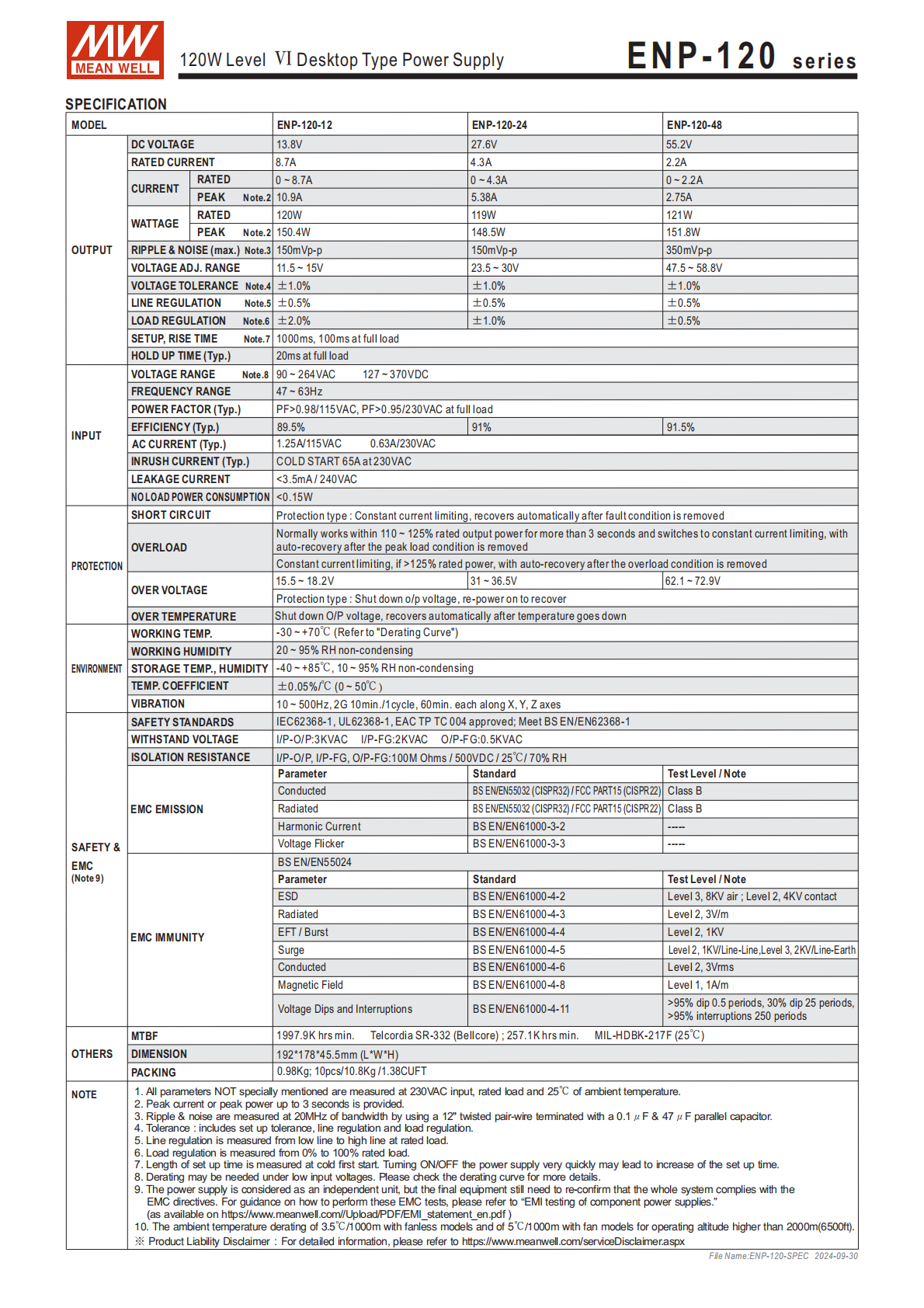 | 規(guī)格項(xiàng) | ENP-120-12 | ENP-120-24 | ENP-120-55.2 | 通用說明 |