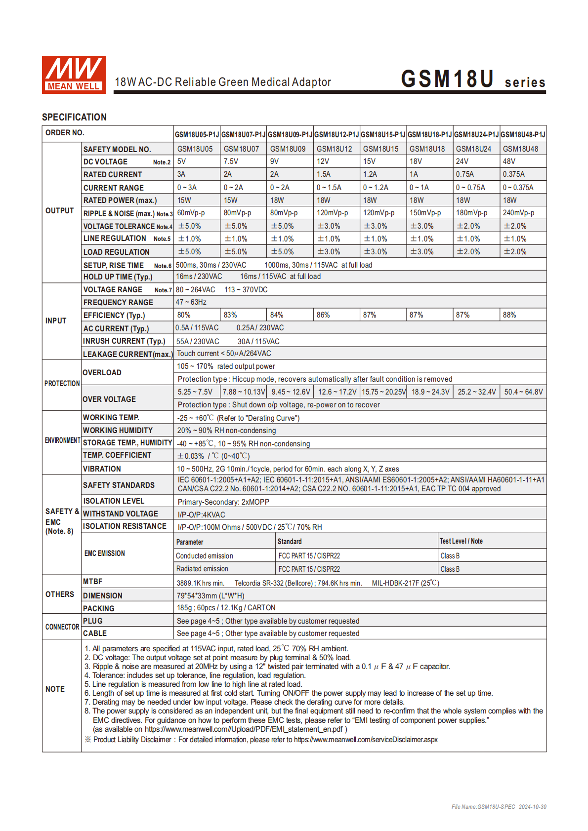 • GSM18U:系列名(18W 醫(yī)療型適配器);