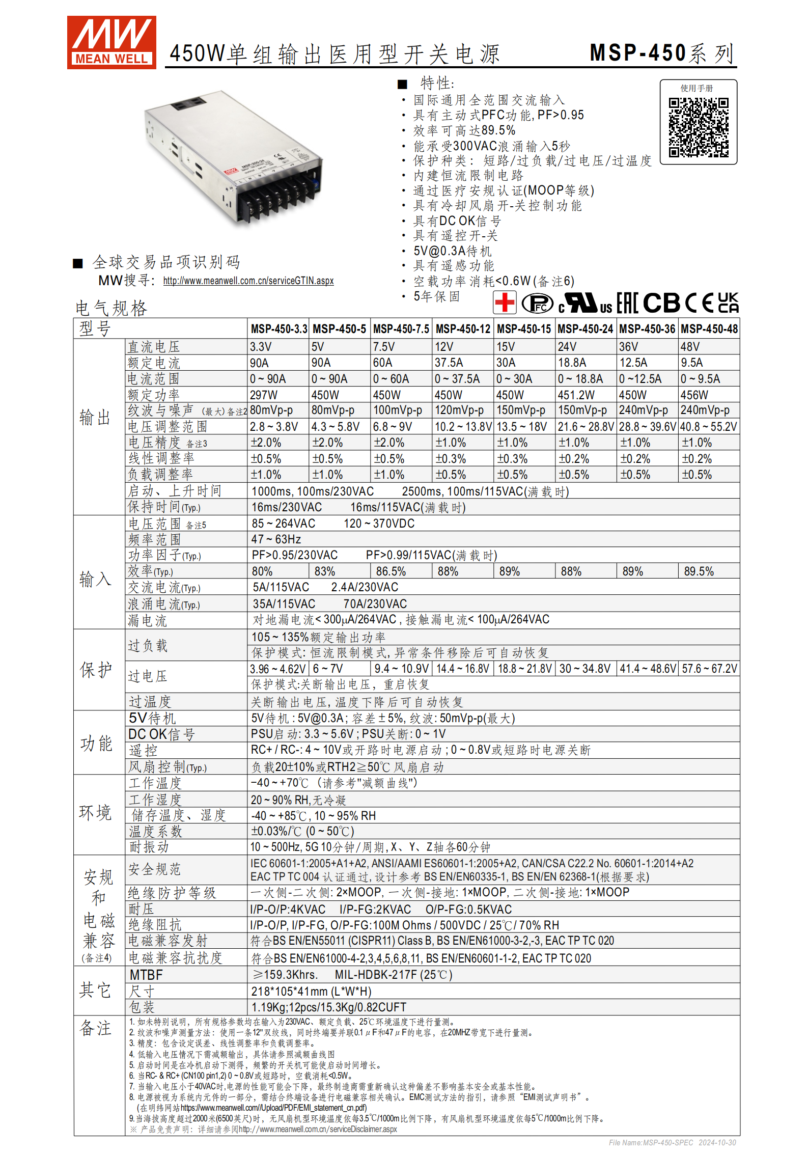 | 系列型號 | MSP-450 系列(含 MSP-450-3.3/5/7.5/12/15/24/36/48 等子型號) |