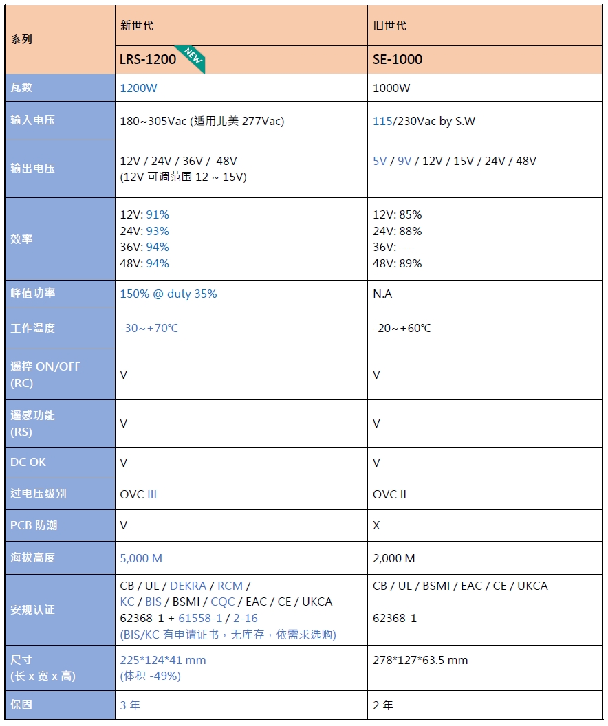 新舊世代產(chǎn)品對(duì)比:LRS-1200系列 與 SE-1000系列